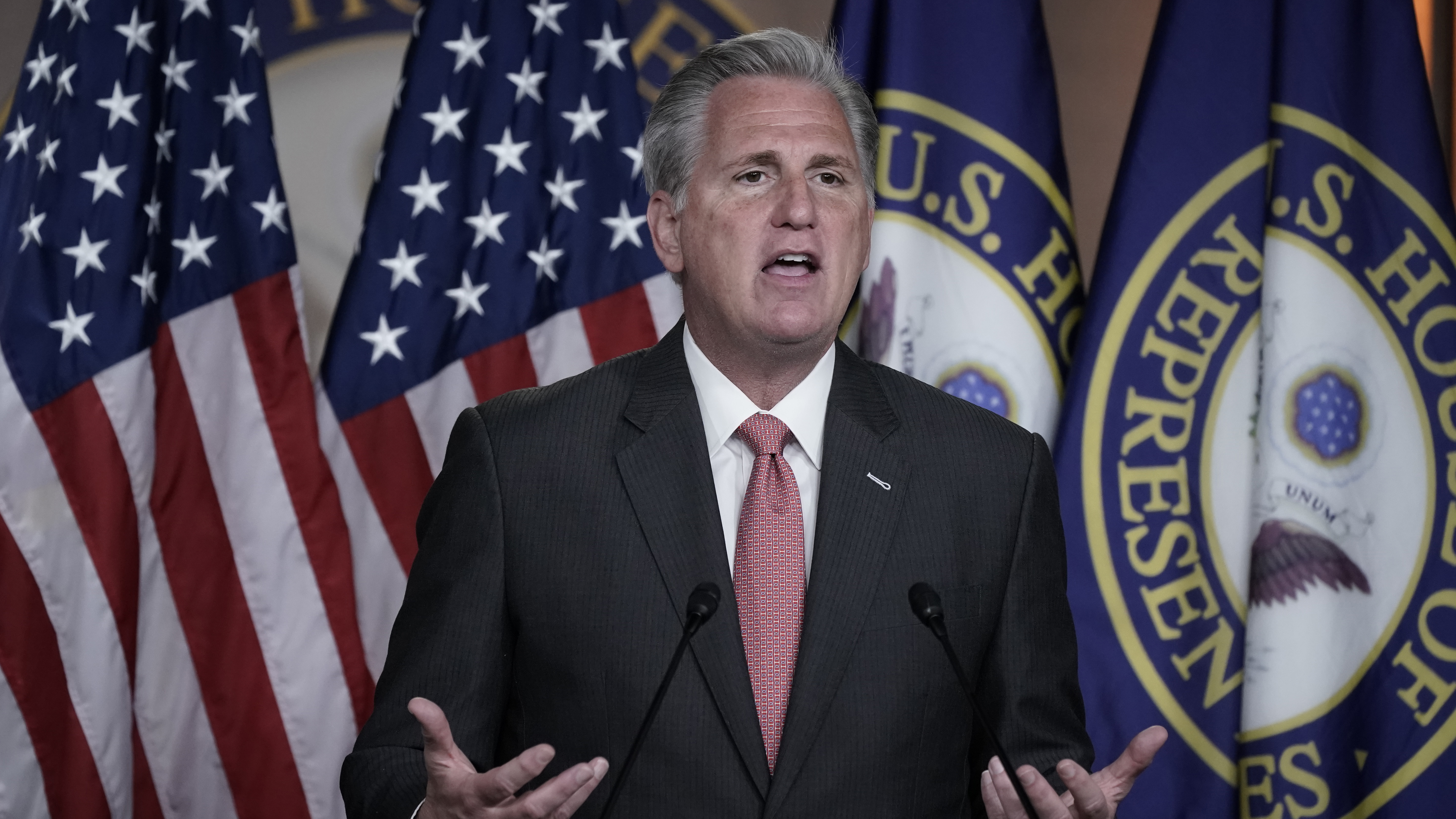 House Minority Leader Kevin McCarthy R-Calif speaks at a press conference at the Capitol building on Aug. House Minority Leader Kevin McCarthy R-Calif admitted Friday his party would be better off working on behalf of the American people to stop the Biden administration than to engage in infighting even if the media will keep pushing the same narrative. While Trump remains in contact with McCarthy he has shunned McConnell from his orbit.